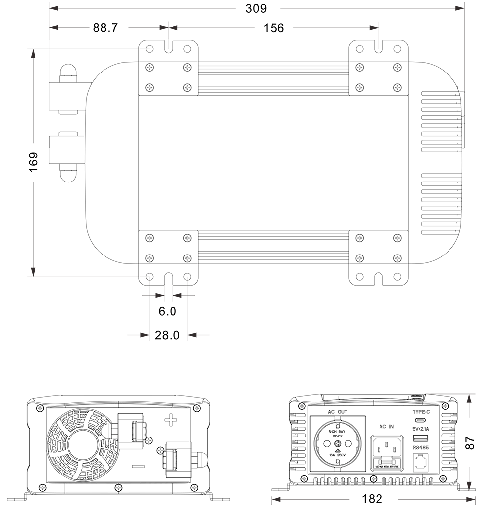 Transfer açarı Standard ATS: Utility AC: 8 ~ 10ms .; Utility AC inverterə: 16 ~ 25ms.