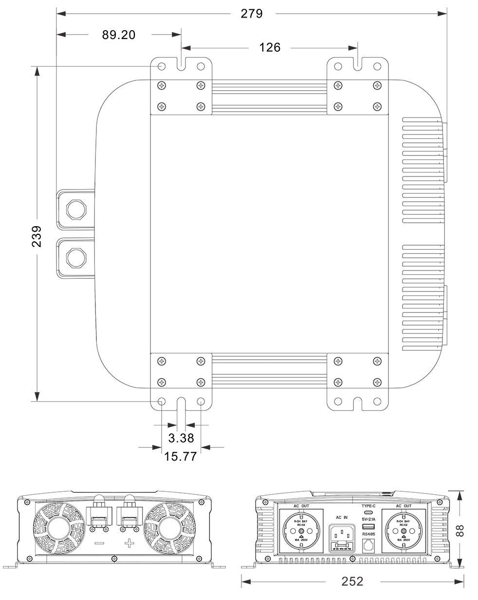 Digərləri Ölçü (W × h × d) 279 × 252 × 88mm