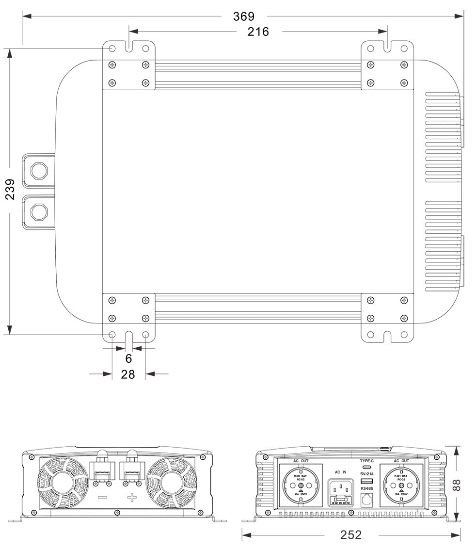 ● Çıxış qorunması: Qısa dövrə / həddindən artıq yükləmə / temperatur / həddindən artıq gərginlik