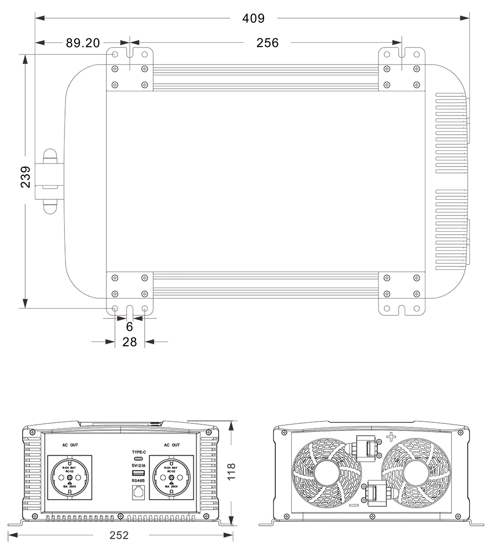 Digərləri Ölçü (W × h × d) 409 × 252 × 118mm