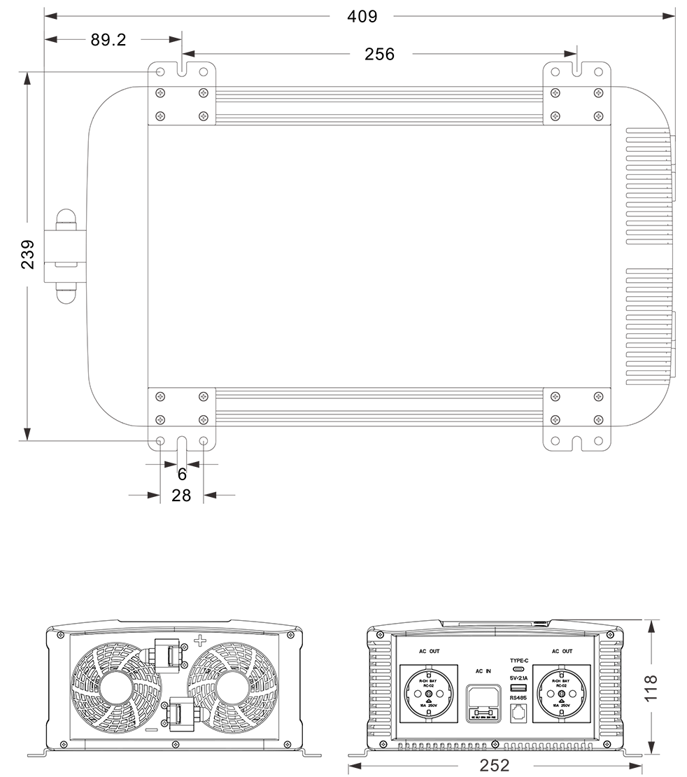 Transfer açarı Standard ATS: Utility AC: 8 ~ 10ms .; Utility AC inverterə: 16 ~ 25ms.